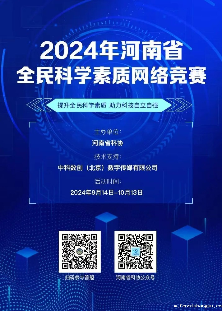 为深入学习贯彻习近平新时代中国特色社会主义思想和党的二十大精神,扎实推进《河南省全民科学素质行动规划纲要实施方案(2021—2025年)》落地见效,在全社会推动形成讲科学、爱科学、学科学、用科学的良好氛围,不断提高全省公民科学素质,河南省科学技术协会决定开展2024年河南省全民科学素质网络竞赛活动。活动时间2024