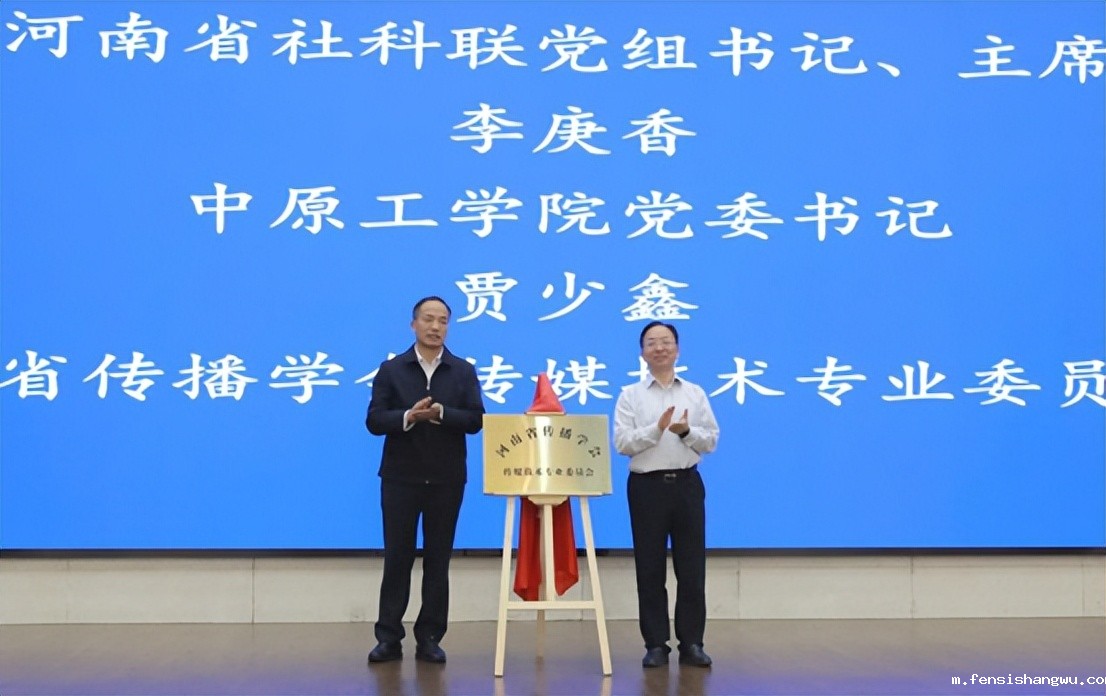 河南省社科联党组书记、主席李庚香,中原工学院党委书记贾少鑫共同为雷竞技最新版app传媒技术专业委员会揭牌