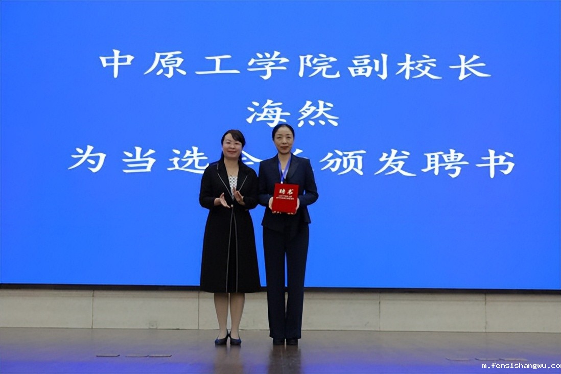 中原工学院副校长海然为当选会长杨静颁发聘书
